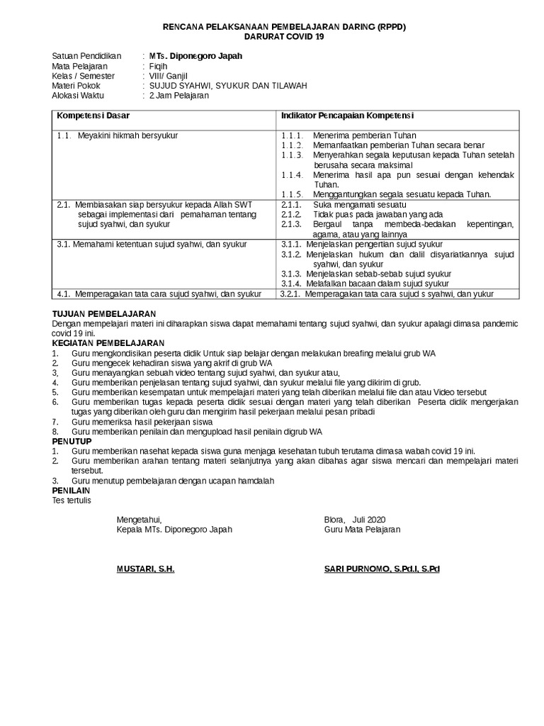 By anas anas tho ricky 36016 views. Rpp fiqih mts kurikulum 2013/kurikulum nasional kelas vii/7. Rpp daring 1 lembar sd/mi kelas 4 tahun 2020/2021. Rpp ini singkat dan praktis tidak membutuhkan banyak halaman alias satu lembar sesuai dengan instruksi mendikbud nadiem makariem. Silabus dan rencana pelaksanaan pembelajaran (rpp).